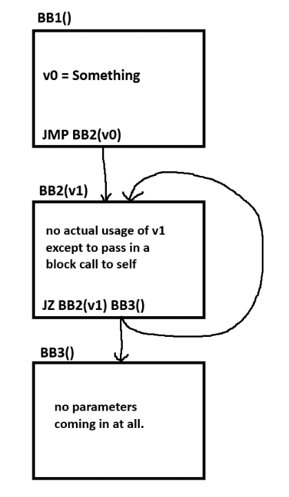 Oh... I'm definitely imagining the IR as that, very good point. As it stands, I do pass all values from one block to another through block parameters. Why do you say "fortunately"?