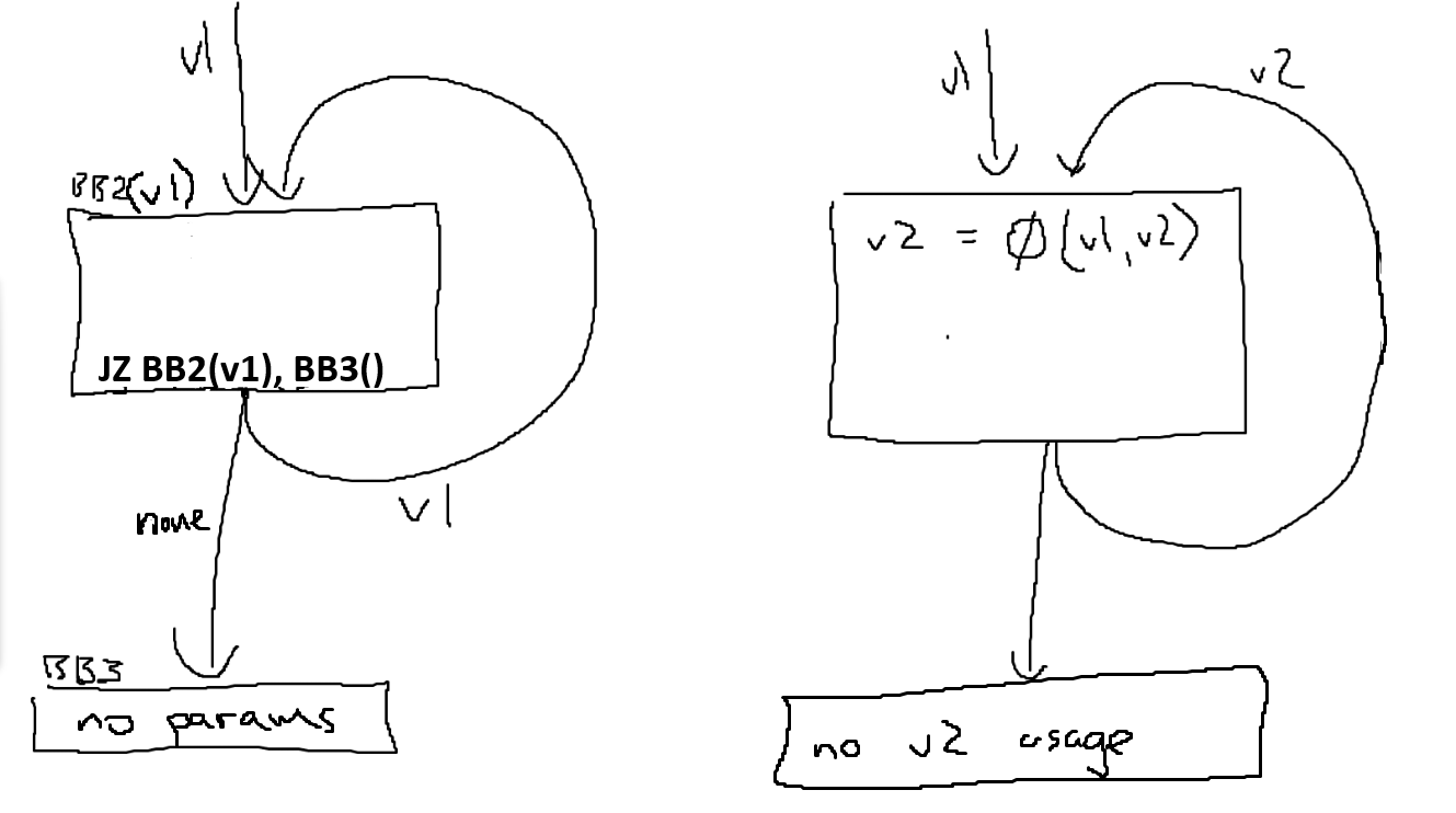 Any references you would recommend for writing a DCE algorithm for an IR that uses basic block parameters? Specifically, handling the elimination of parameters when used in loops. With PHI's it's somewhat obvious because the phi joins itself with an incoming variable. But the BBparams I guess I need to write some algorithm to discover the same situation.