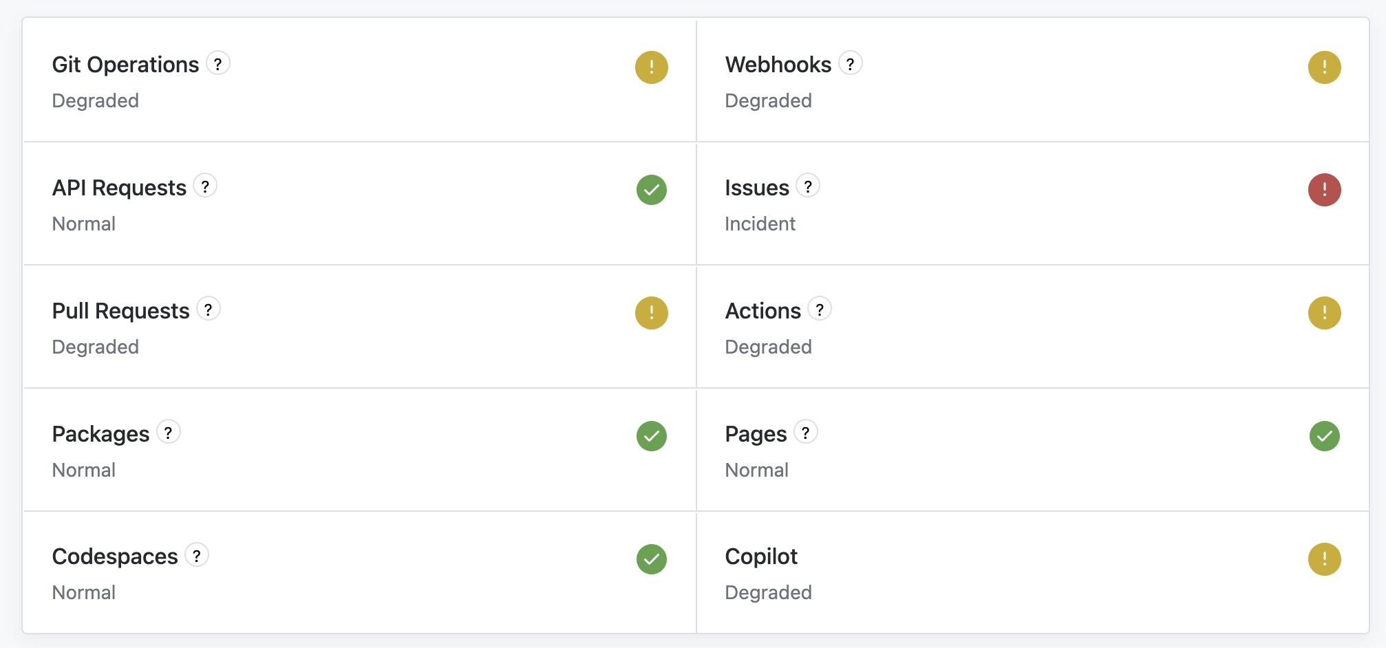 FWIW, all of gh is on a stability freeze -- no new rollouts or config changes of any sort -- to fully understand and rectify what happened particularly this week.