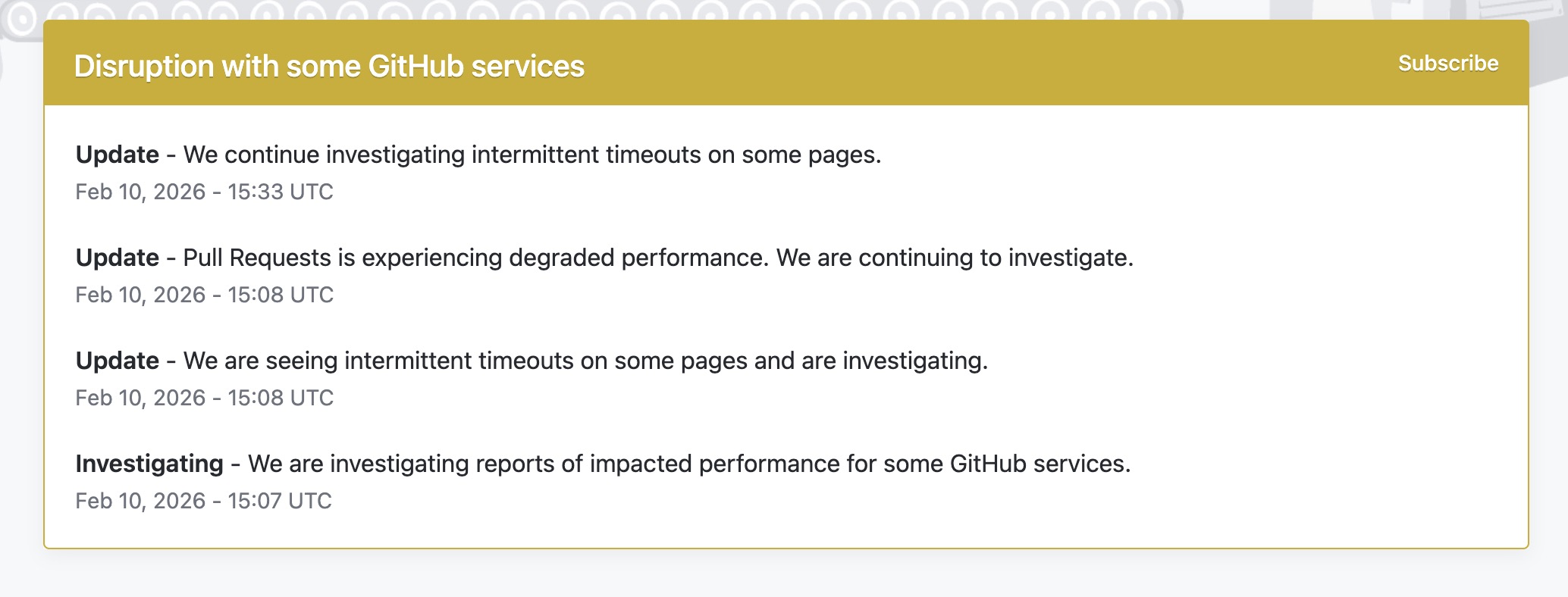 Continuing in that spirit GH actions and GH as a whole has been slow/buggy this week (and a little of last week)? My emails have been also coming through slowly, but haven't seen actions failures as a symptom just yet