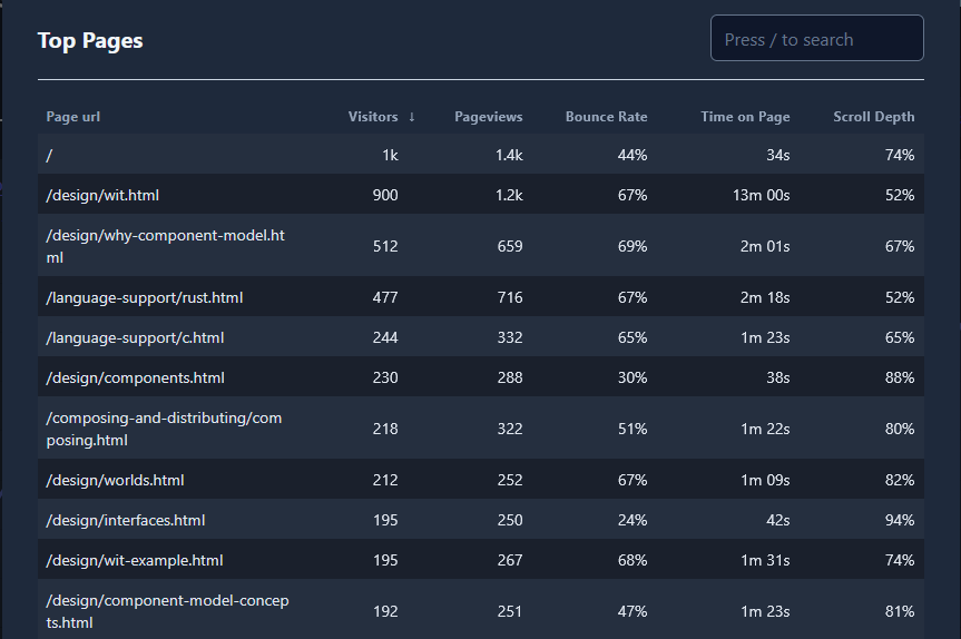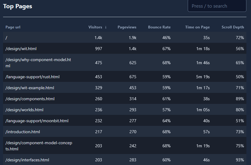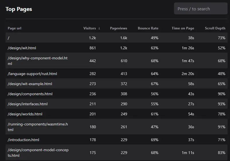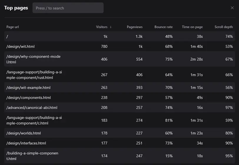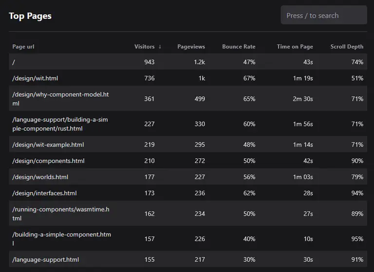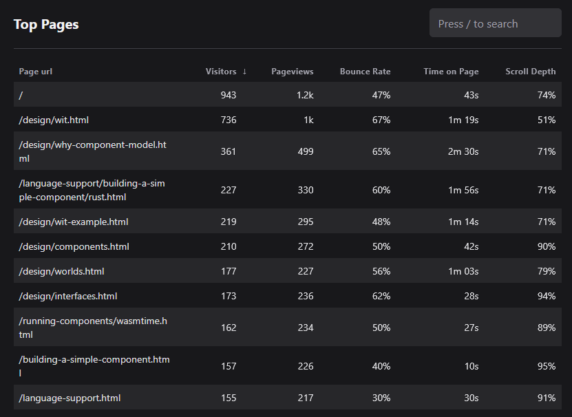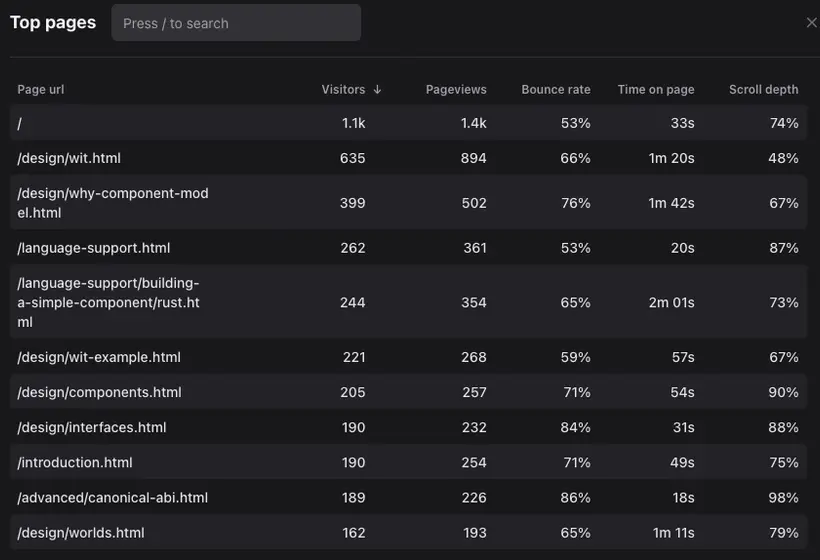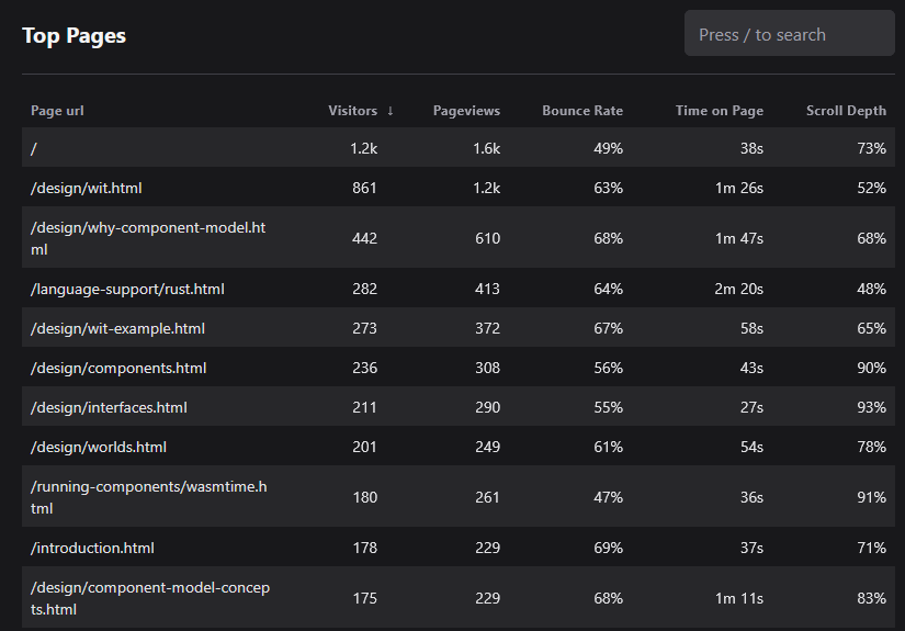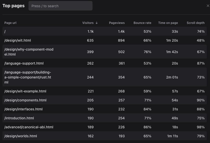 Yeah, the WIT page has been #1 for two months in a row, and in both cases about twice as popular as the second most visited page (which in both cases was "Why the Component Model.")