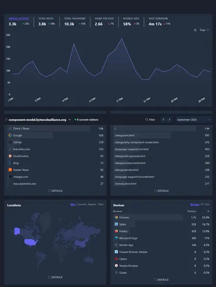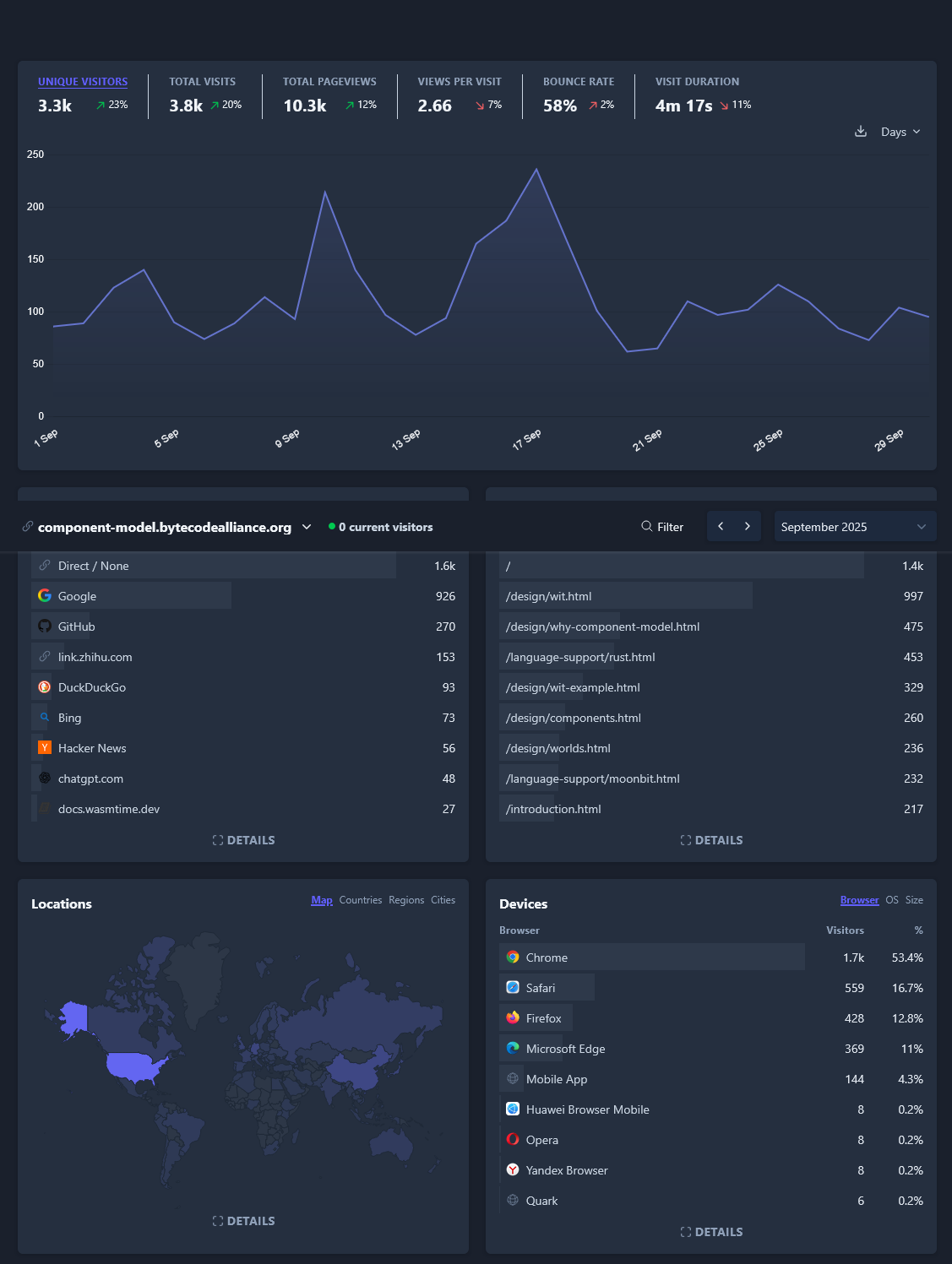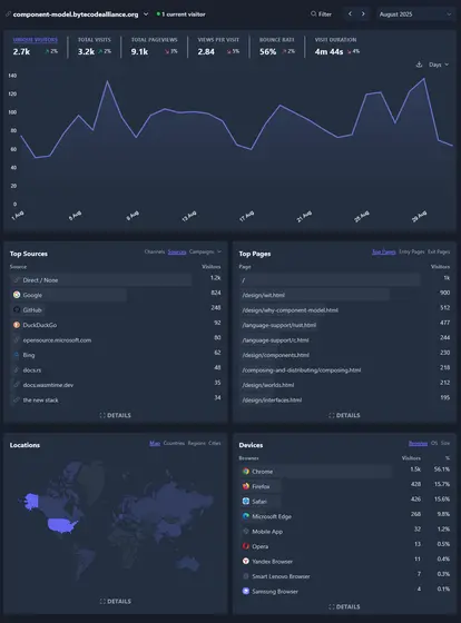 Here's the September 2025 site analytics report for our online Component Model Book: