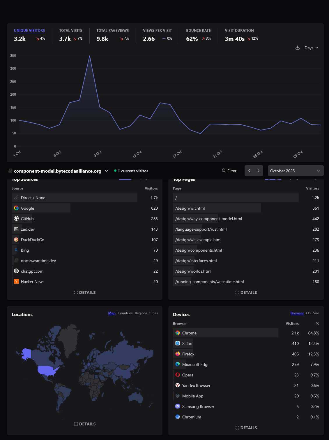 Here's the October 2025 site analytics report for our online Component Model Book: