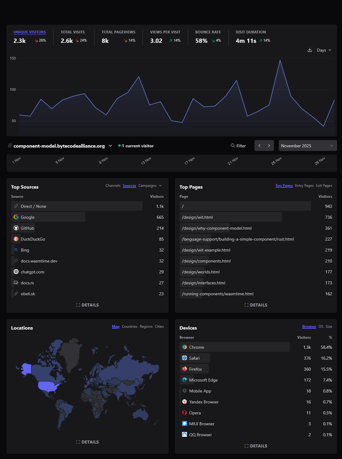 Here is the November 2025 site analytic report for our online Component Model Book: