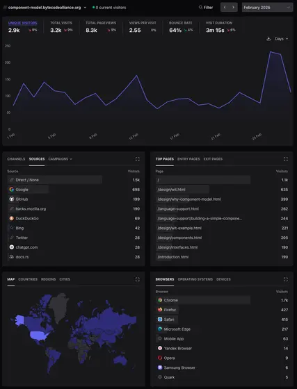 February 2026 site analytics for our Component Model Book: