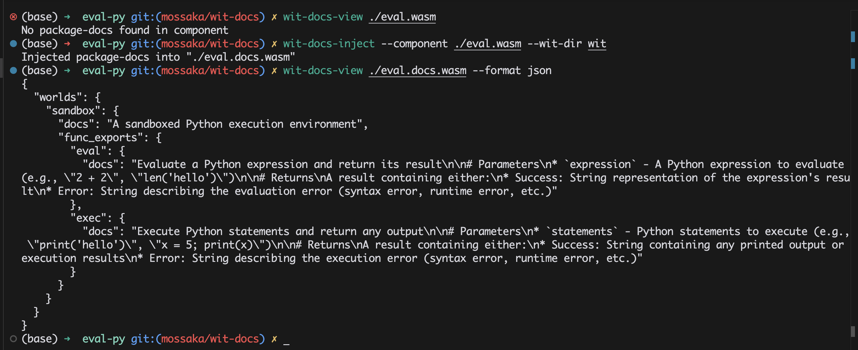 Ah great thanks for the discussion. yeah we are looking for non-wit components having WIT docstrings embedded so that the WIT extracted from the component does preserve the comments.